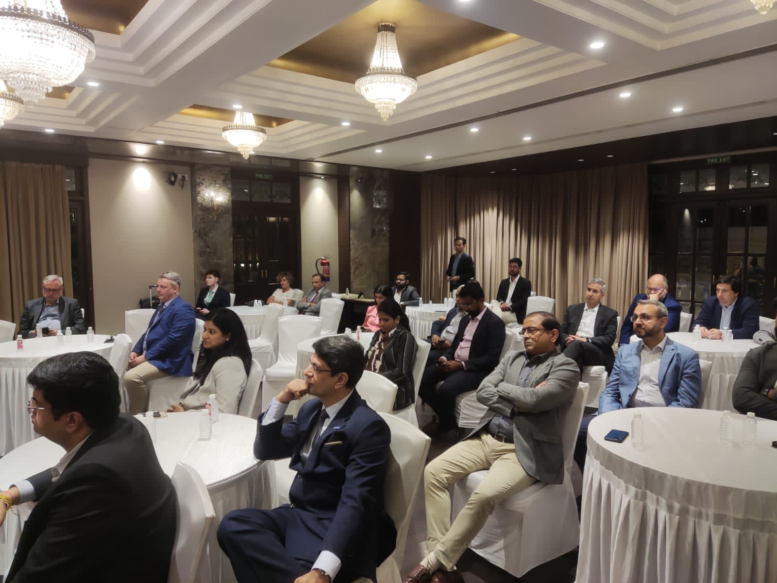 ISCC organized a cocktail and dinner event in Mumbai, featuring a panel discussion on the topic “Collaborating with the state of Maharashtra and India.” The event was graced by esteemed voices from various sectors, including a Senior Advisor from the National Investment and Infrastructure Fund (NIIF), a Former Advisor from the National Highways Authority of India (NHAI), a Board Member from the European Business and Technology Centre (EBTC), the Economic and Commercial Counsellor from the Economic and Commercial Office of Spain in Mumbai, and a Board Member from the Indian Merchants’ Chamber (IMC).