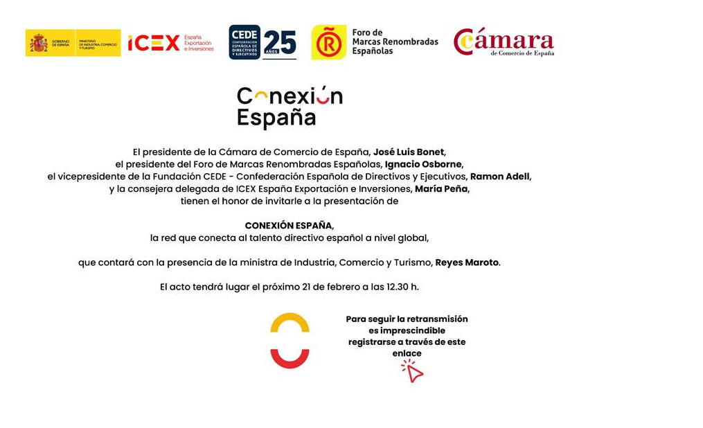 Invitation to SCC members to virtually participate in the presentation of ‘Conexión España’ – the network that connects Spanish management talent globally.